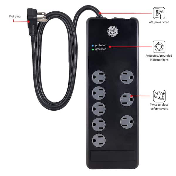 8-Outlet Surge Protector with 4 ft. Cord, Black