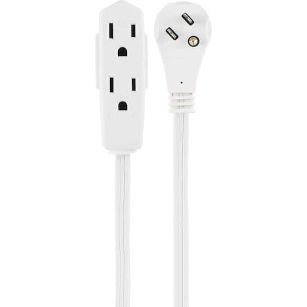 8 ft. 16/3 3-Outlet Office Extension Cord with Low-Profile Flat Plug, White