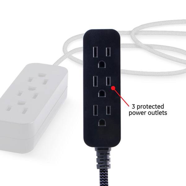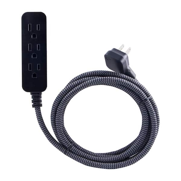 8 ft. 3-Outlet Designer Extension Cord Surge Protector, Black/Gray