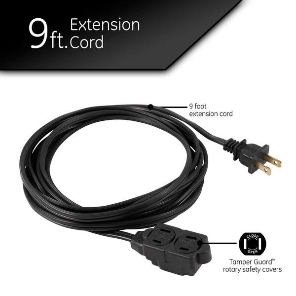 9 ft. 2-Wire 16-Gauge 3-Outlet Black Polarized Indoor Extension Cord