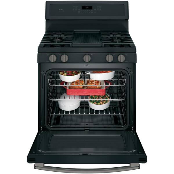Profile 30 in. 5.6 cu. ft. Gas Range with Self-Cleaning Convection Oven in Black Slate, Fingerprint Resistant