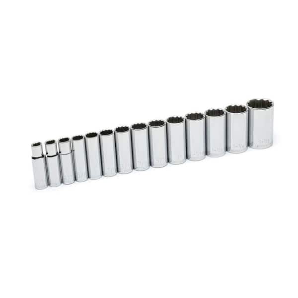 1/2 in. Drive 12-Point Deep SAE Socket Set (14-Piece)