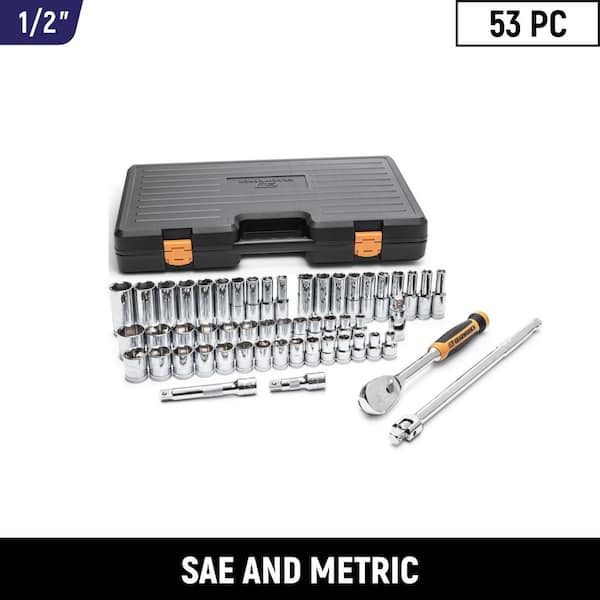 1/2 in. Drive 90-Tooth 6-Point Standard and Deep SAE/Metric Mechanics Tool Set (53-Piece)