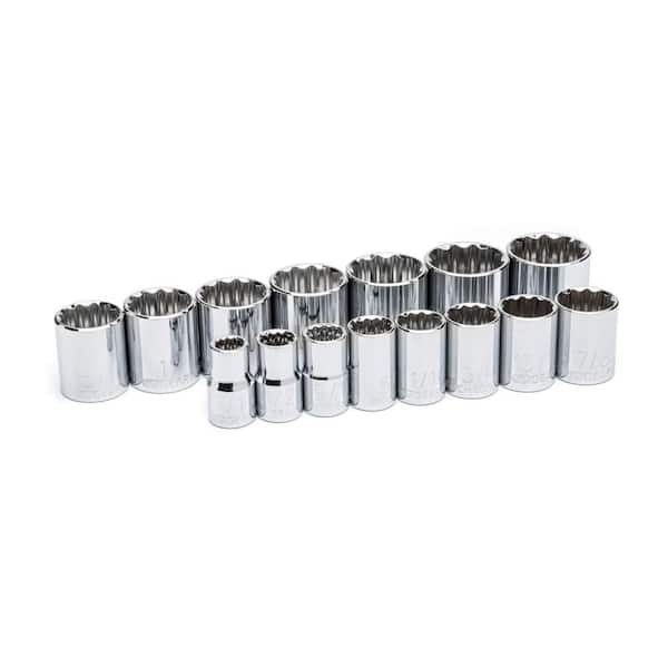 1/2 in. Drive SAE 12-Point Socket Set with Case (15-Piece)