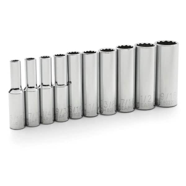 1/4 in. Drive 12-Point Deep SAE Socket Set (10-Piece)