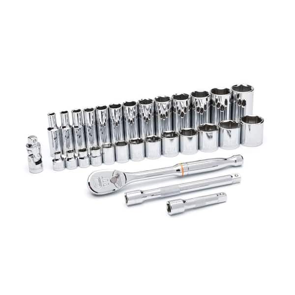 3/8 in. Drive 6-Point Standard & Deep SAE 90-Tooth Ratchet and Socket Mechanics Tool Set (30-Piece)