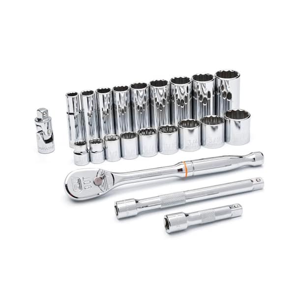 3/8 in. Drive 90-Tooth 12 Point Standard and Deep SAE Mechanics Tool Set with Case (22-Piece)