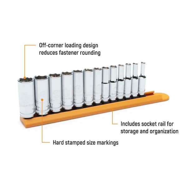 3/8 in. Drive Metric 6-Point Deep Socket Set (14-Piece)