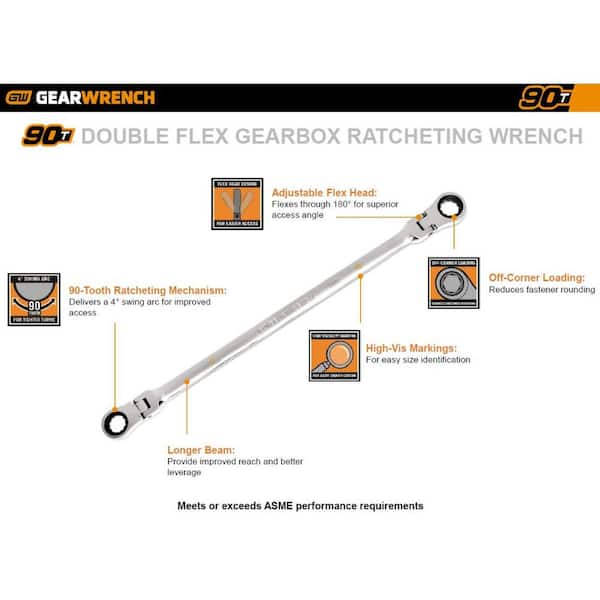 GearBox SAE 12-Point 90-Tooth Double Flex Head Extra Long Ratcheting Wrench Set (4-Piece)