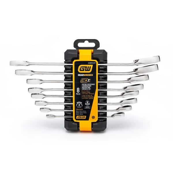 Metric 90-Tooth Reversible Combination Ratcheting Wrench Set (8-Piece)