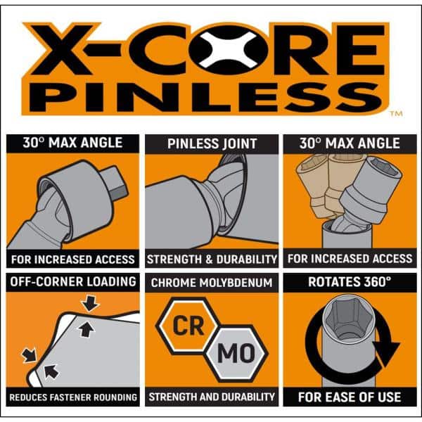 X-Core 1/2 in. Drive 6-Point Standard Pinless SAE Universal Impact Socket Set (9-Piece)
