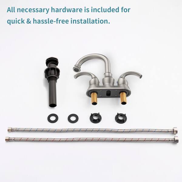 4 in. Centerset Double Handle High Arc Bathroom Faucet with Drain Kit Included in Brushed Nickel