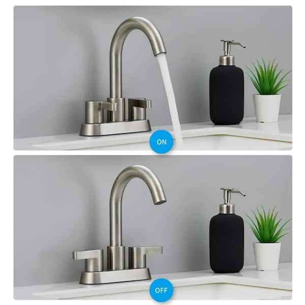 4 in. Centerset Double Handle High Arc Bathroom Faucet with Drain Kit Included in Brushed Nickel