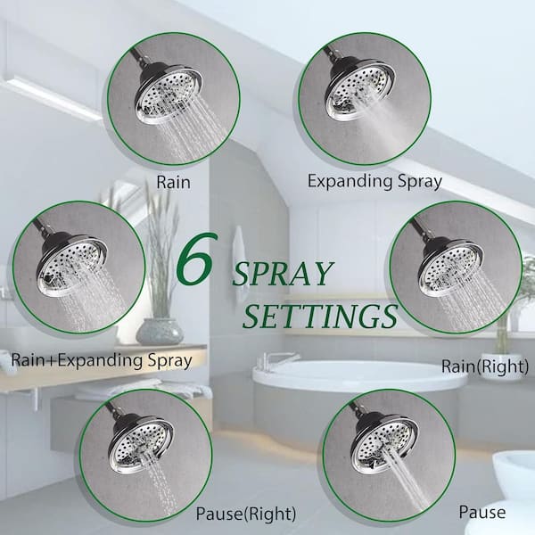 6-Spray Patterns with 1.2 GPM 5 in. Wall Mount Rain Fixed Shower Head with Anti-Clogging Nozzles in Chrome