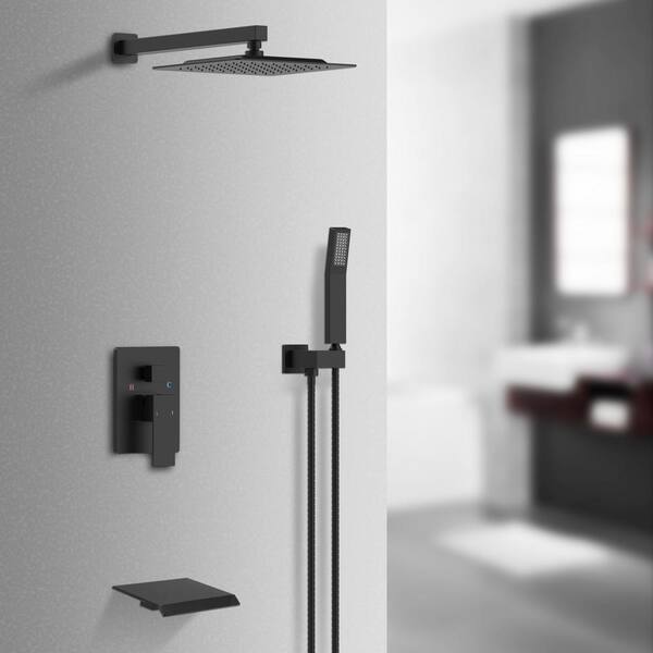 Rain Single Handle 1-Spray Shower Faucet System 1.41 GPM with Pressure Balance in Matte Black Wall Mounted