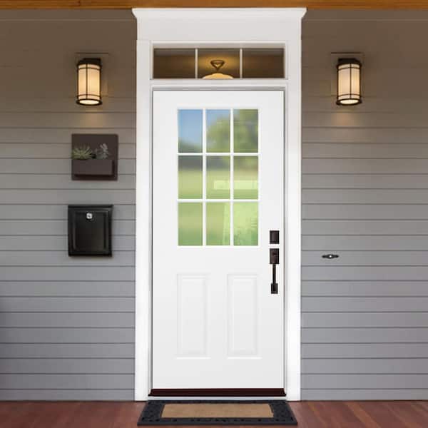 36 in. x 80 in. Left-Hand/Inswing 2 Panel 1/2 Lite 9 Lite Clear Glass Smooth Fiberglass Prehung Door w/PVC Frame