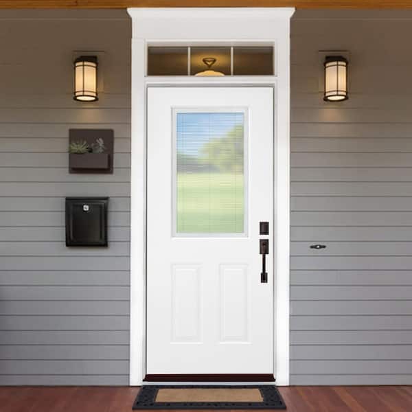 36 in. x 80 in. Left-Hand/Inswing 2 Panel 1/2 Lite w/Blinds Clear Glass Smooth Fiberglass Prehung Door w/PVC Frame
