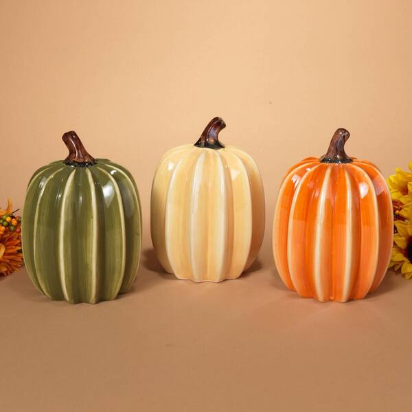 Assorted 8 in. H Ribbed Dolomite Harvest Pumpkins (Set of 3)