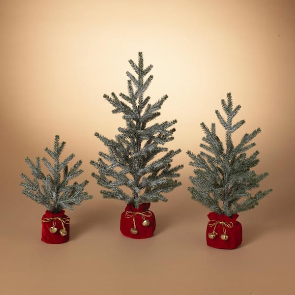 Set of 3 Holiday Pine Trees with Christmas Jingle Bell Base