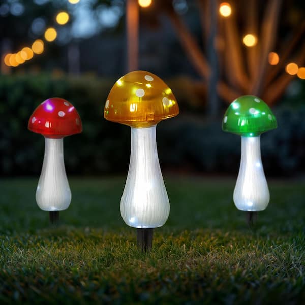 (Set of 3) Outdoor Multi-Colored Solar Lighted 12.2 in. Mushroom Garden Stakes