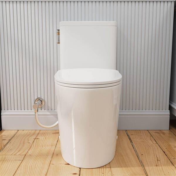 12 in. Rough in 1.0 / 1.28 GPF Dual Flush High Efficiency Left Side Elongated ADA Height Toilet in White, Seat Included