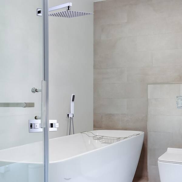2-Spray Square 10 in. Rain Shower Head with Hand Shower with 3-Knob Handles in Chrome