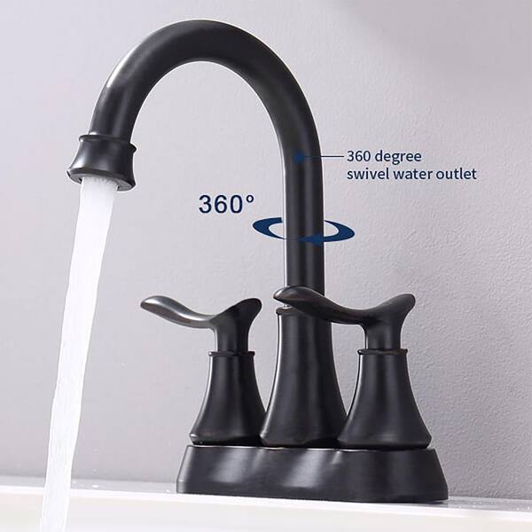 4 in. Centerset Double-Handle High Arc Bathroom Faucet with Pop-up Drain and Supply Hoses in Matte Black