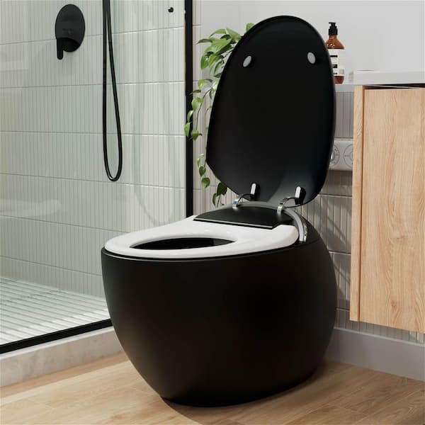 Round Bowl Smart Bidet Toilet 1.28 GPF in Black with Remote Control,Water Tank, Seat Sensor,Constant Temperature Heating