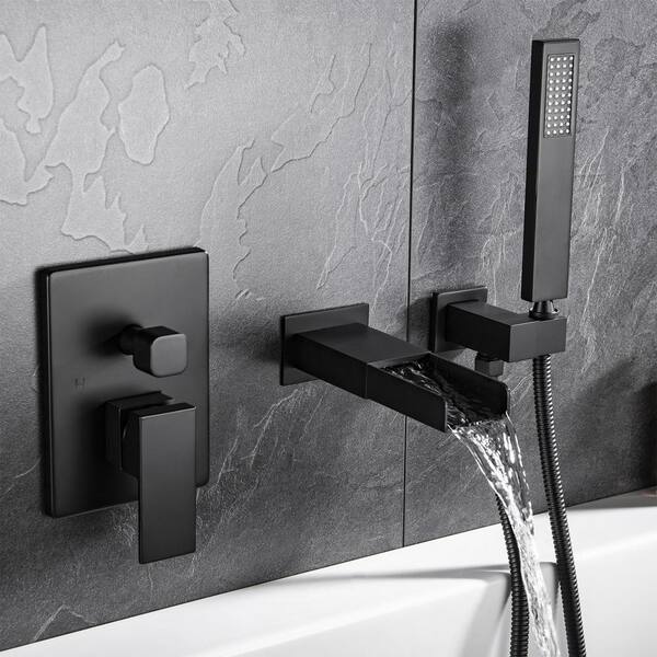 Single-Handle 2-Spray Waterfall Tub and Shower Faucet with Hand Shower in Matte Black (Valve Included)