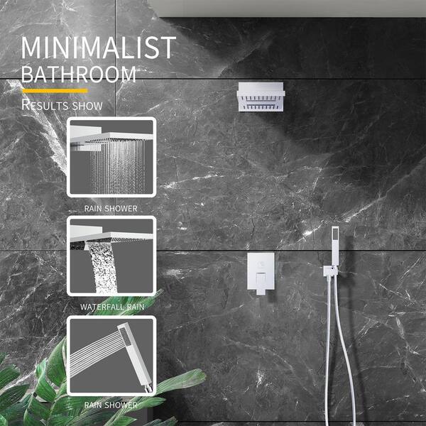 Single-Handle 3-Spray 9'' Rectangular High-pressure Wall Mount Waterfall Shower Faucet Set with Hand Shower in Chrome