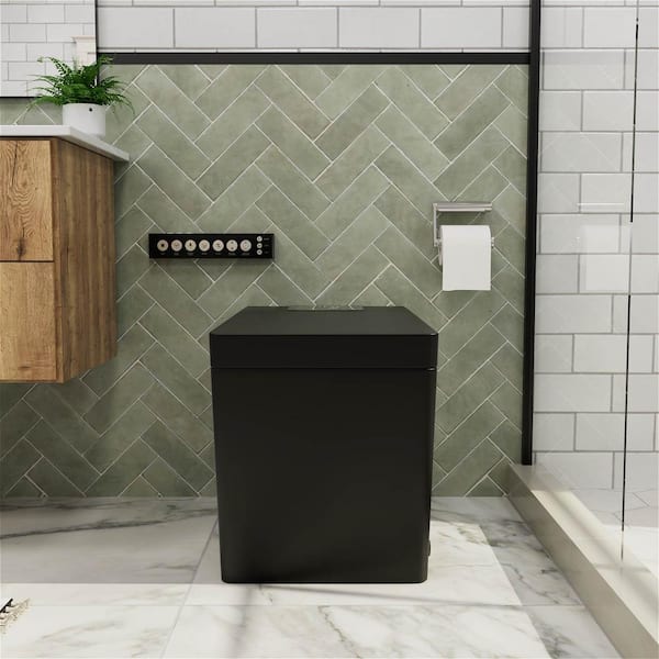 Smart Toilet Bidet 1-Piece 0.8/1.2 GPF Dual Flush Square Toilet in Matte Black Seat with Remote Panel