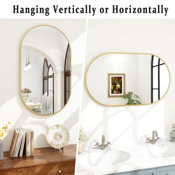 20 in. W x 36 in. H Oval Metal Framed Wall Bathroom Vanity Mirror Gold