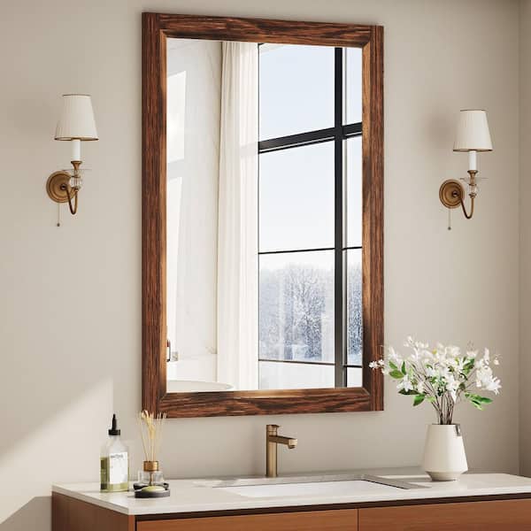 24 in. W x 35.8 in. H Rectangular Wooden Framed Russet Brown Wall Bathroom Vanity Mirror