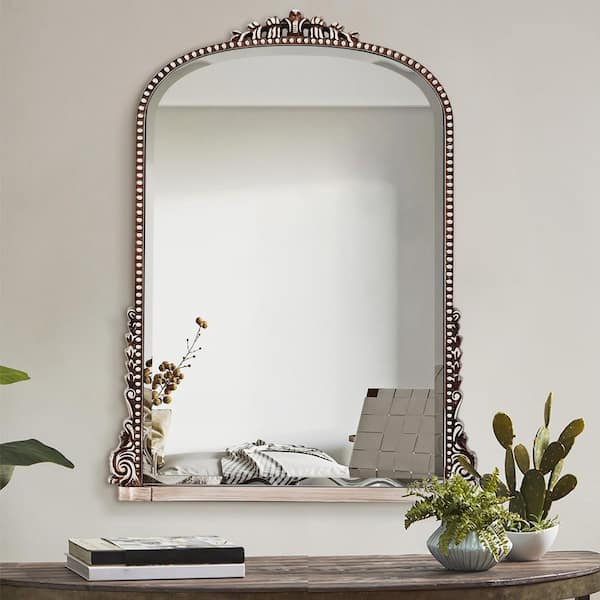 28 in. W x 40 in. H Arched Decorative Antique Silver Polyurethane Frame Wall Bathroom Vanity Mirror