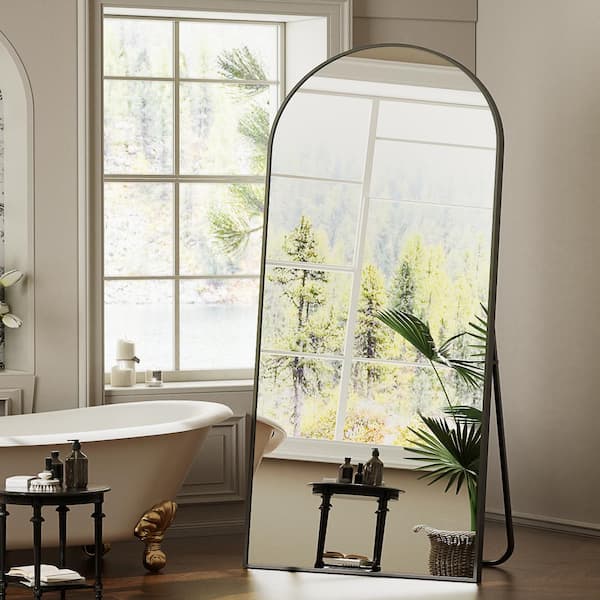 30 in. W x 71 in. H Arched Aluminum Alloy Framed Black Full Length Mirror Wall Vanity Mirror Bathroom Mirror