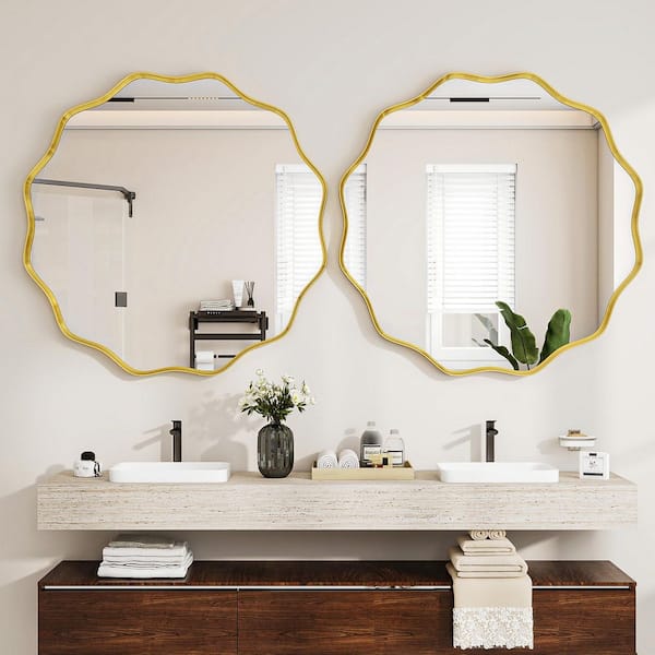 36 in. W x 36 in. H Round Decorative Wave-Edge Gold Metal Deep-Framed Wall Bathroom Vanity Mirror