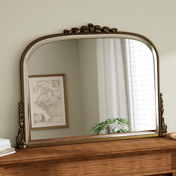 44 in. W x 32 in. H Arched Decorative Antique Gold Polyurethane Frame Wall Bathroom Vanity Mirror