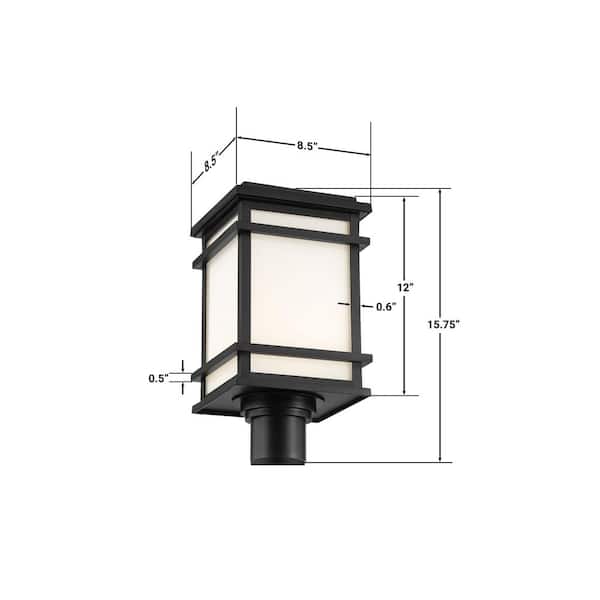 Balmoral Black Integrated LED Outdoor Post with White Panel Glass Shade