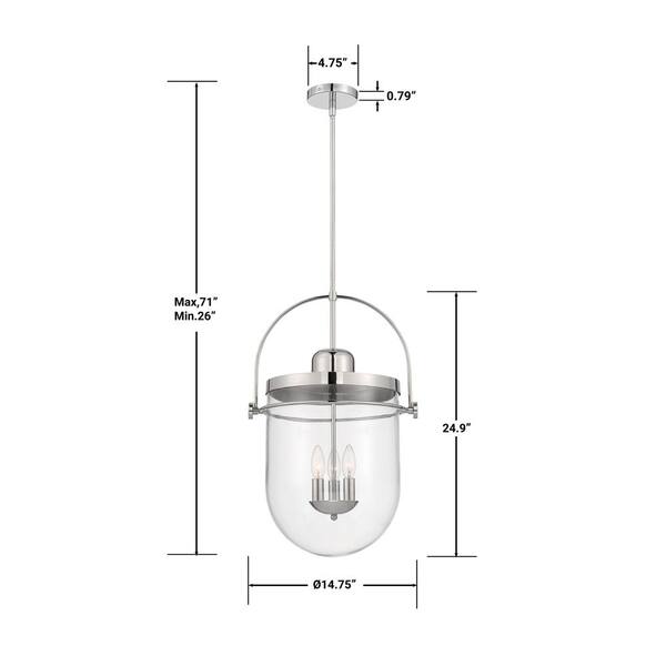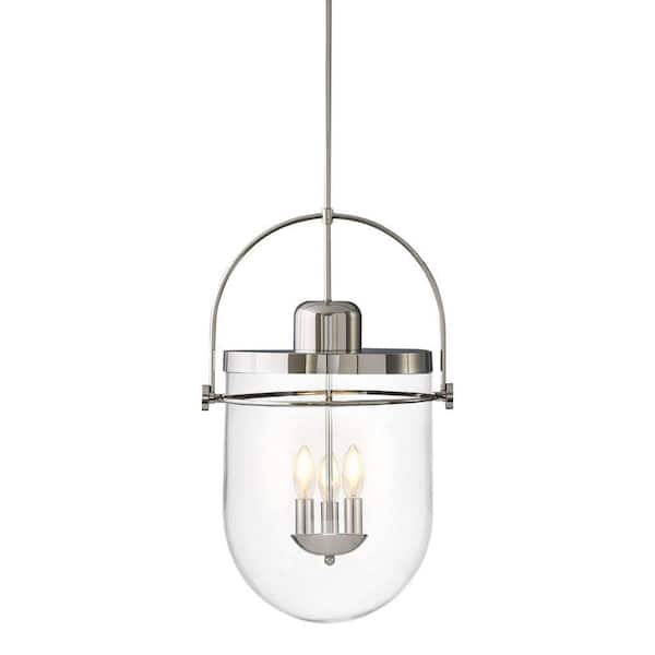 Lowell 3 Light Polished Nickel Pendant with Clear Glass Shade