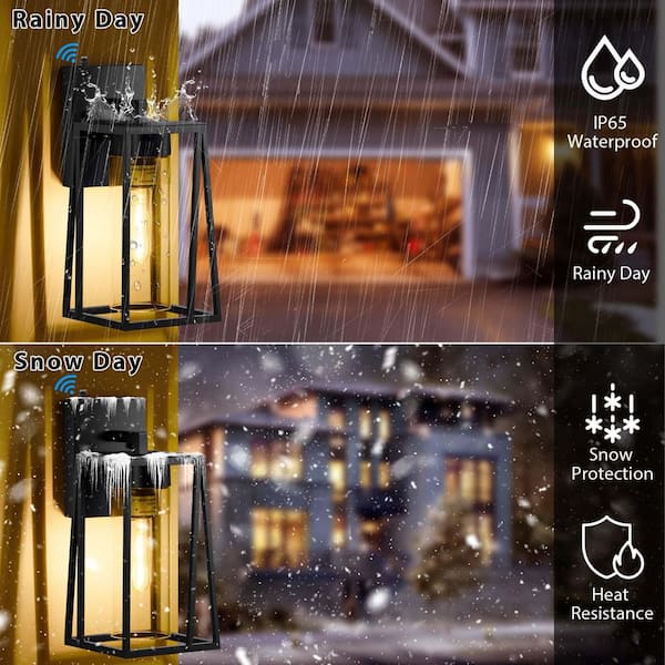 1-Light Matte Black Dusk to Dawn Hardwired Outdoor Wall Lantern Sconce with Clear Glass(2-Pack)