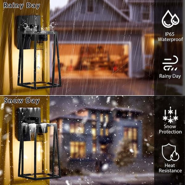 1-Light Matte Black Hardwired Outdoor Wall Lantern Sconce with Clear Glass(2-Pack)