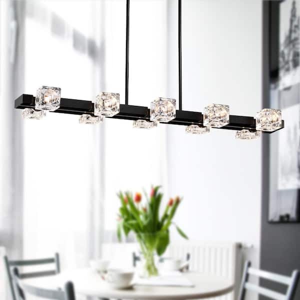 10-light Black Chandelier Linear Chandelier Crystal Hanging Lighting for Kitchen Island with G9 Bulbs Included