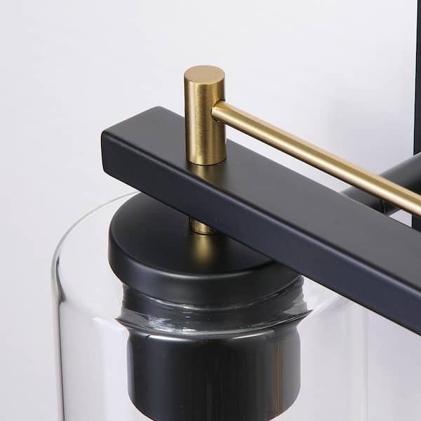 17.32 in. 3-Light Matte Black & Gold Modern Vanity Light with Clear Glass Shade
