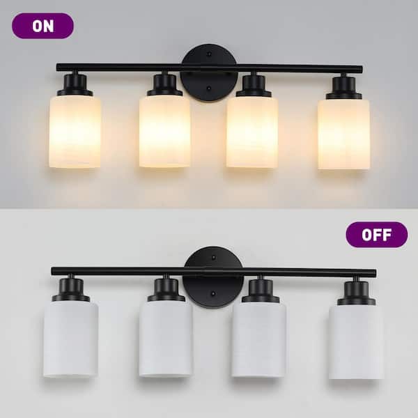 24.4 in. 4-Light Matte Black Bathroom Vanity Light Fixture with Frosted Glass Shades