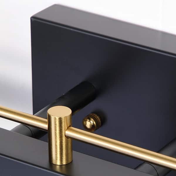 • Modern matte black and gold vanity light with seed glass shades