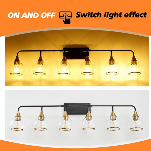 48 in. 6-Light Matte Black and Gold Modern Vanity Light with Clear Glass Shade