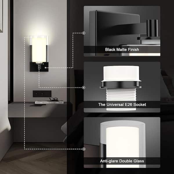 5 in. 1-Light Black Bathroom Vanity Light Wall Sconce with Double Glass Shade (Set of 2)