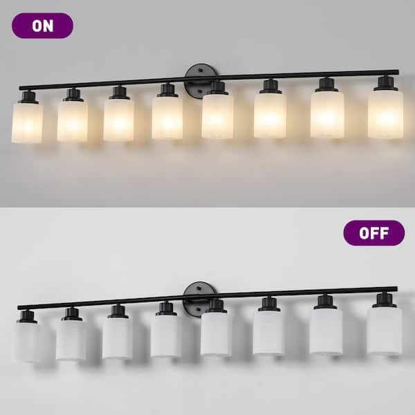 52 in. 8-Light Matte Black Bathroom Vanity Light Fixture with Frosted Glass Shades