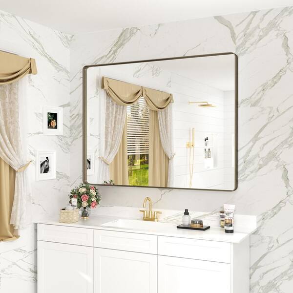 40 in. W x 30 in. H Rectangular Aluminum Alloy Frame with Inner Deep Design and Tempered Glass Wall Mirror in Bronze