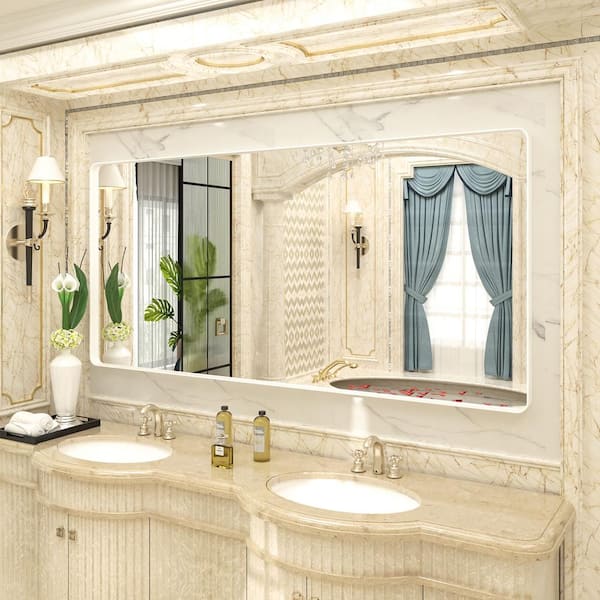72 in. W x 36 in. H Rectangular Aluminum Alloy Frame with Inner Deep Design and Tempered Glass Wall Mirror in White